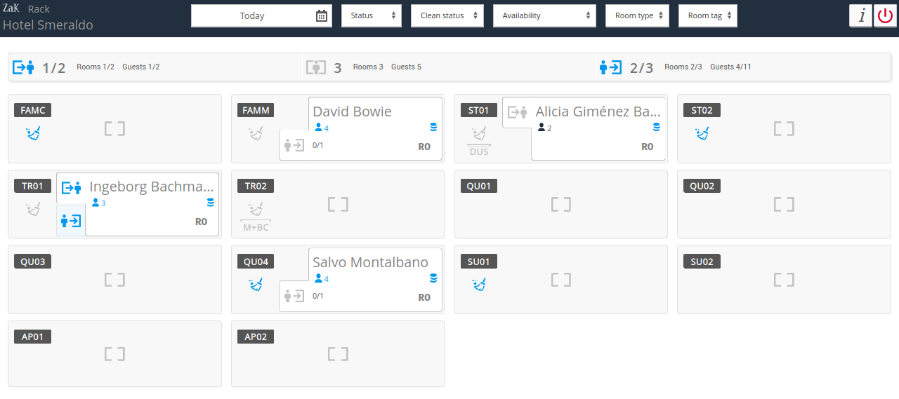 Μέσα από το πρώτο πλαίσιο επάνω αριστερά, μπορείτε να επιλέξετε μια ημερομηνία για την οποία θα ελέγξετε εάν κάθε δωμάτιο είναι κατειλημμένο (και για πόσο χρόνο), εάν έχετε check-in, check-out, εάν είναι δωρεάν (για πόσες μέρες ακόμα), αν είναι καθαρό κ.λπ.
