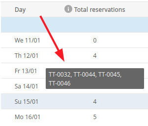 Περνώντας το ποντίκι σας πάνω από τα αποτελέσματα στον πίνακα, θα δείτε τη λίστα των επιλεγμένων κρατήσεων που δημιούργησαν αυτό το αποτέλεσμα. Αυτό λειτουργεί μόνο εάν στην κορυφή επιλέξετε να ομαδοποιήσετε τα αποτελέσματα κατά "ημέρα" ή "hot dates". Για παράδειγμα: