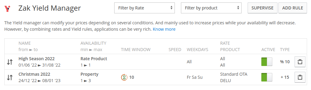 Το ZaK Yield Manager είναι ένα βασικό εργαλείο, αλλά πολύ ισχυρό: σας παρέχει πολλές επιλογές για να βελτιστοποιήσετε τις στρατηγικές πωλήσεών σας όπως θέλετε!
