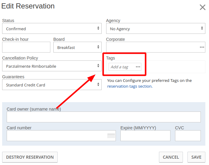 Μπορείτε να δημιουργήσετε μια νέα ετικέτα ή να εκχωρήσετε μια υπάρχουσα απευθείας από τις λεπτομέρειες της κράτησης.
