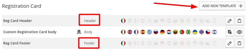 Για την κεφαλίδα και το υποσέλιδο, πρέπει πρώτα να δημιουργήσετε ένα συγκεκριμένο πρότυπο στο Ρυθμίσεις > Πρότυπα, όπως στο ακόλουθο παράδειγμα:
