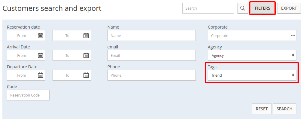 The tags that you assign to the stay, can be used as a filter for the research of reservations. In this way ZaK will show you only reservations containing that tag. You can proceed from the following section: