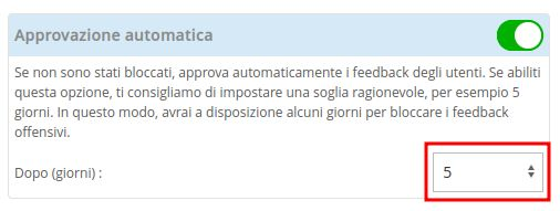 By enabling this option, you can choose the number of days after which ZaK will automatically approve feedback, unless you approve/reject it manually before the period set here: