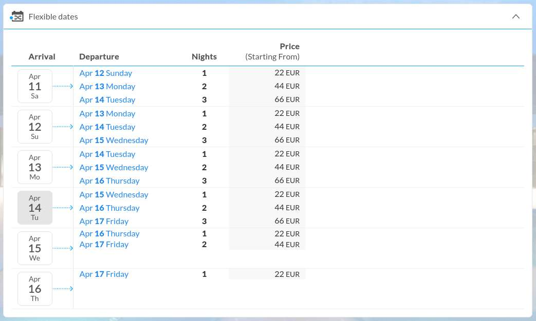 If there is no availability, enabling Flexible Dates will show the guest additional suggestions: