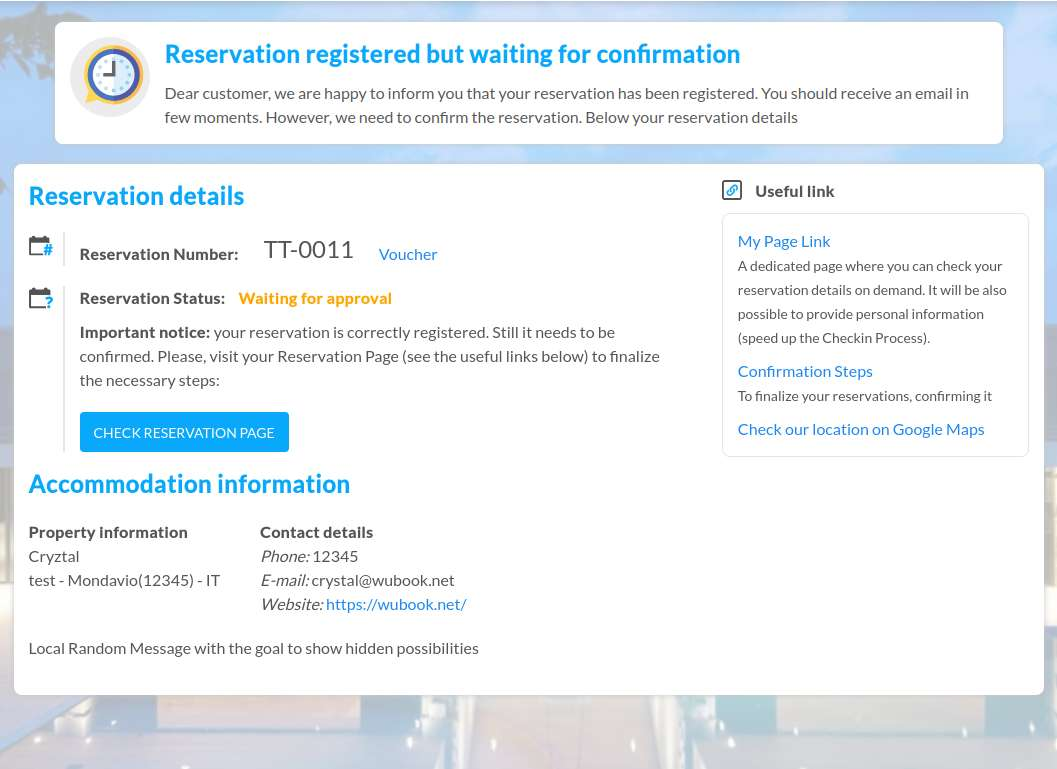 To make a reservation, the guest will access your Online Reception, which you must have already set up by following all the steps in the relevant documentation: