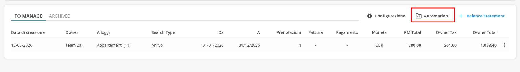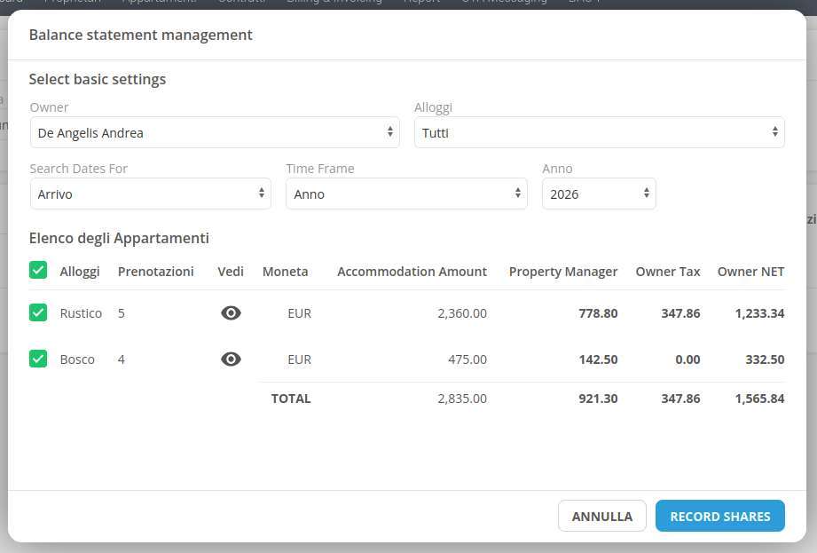 The goal is to automatically allocate the amounts generated during the selected period according to the ownership rules configured for the properties