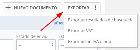 2. Exportar VAT: para exportar los detalles de tus documentos, con información sobre IVA, código fiscal, municipio, etc.