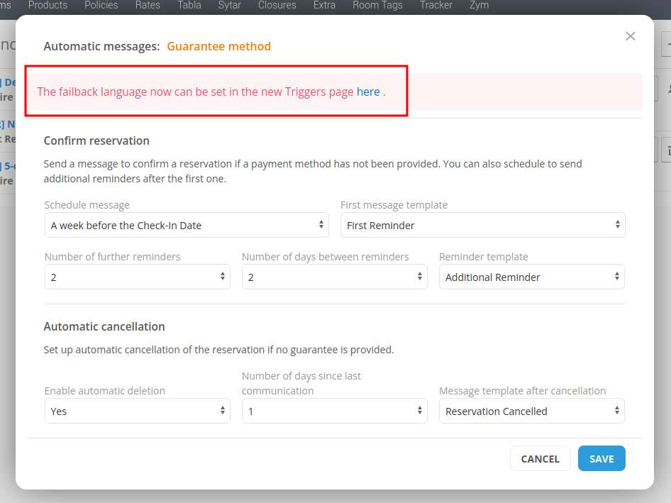 - La cancelación automática de la reserva si el huésped no la garantiza después de X días: