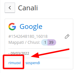 To disable Google, simply delete the channel in ZaK (from the Sales>Channels menu) by clicking on “remove.” Also remember to suspend the campaign with Google itself.