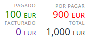 Ahora ya puedes emitir la factura. ZaK informará 100 EUR como ya pagados y facturados, y 900 EUR aún por pagar: