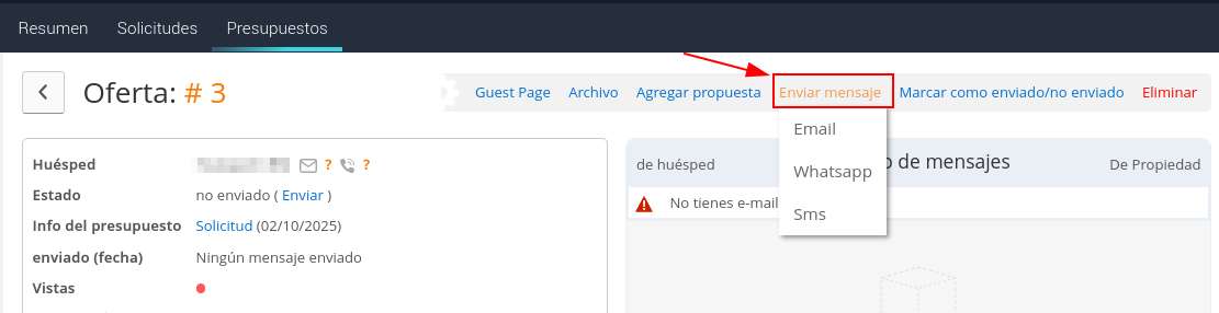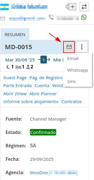 Los envíos de SMS y Whatsapp son manuales, huésped por huésped. Mientras que los emails puedes configurarlos para que sean enviados automáticamente (opcional) según diversos eventos y condiciones.