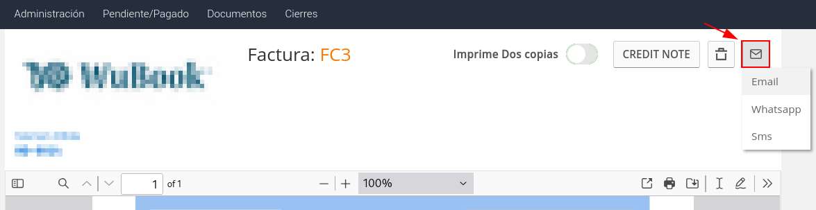 • En Pagos > Documentos, desde de la lista de documentos o desde cada documento propiamente dicho: