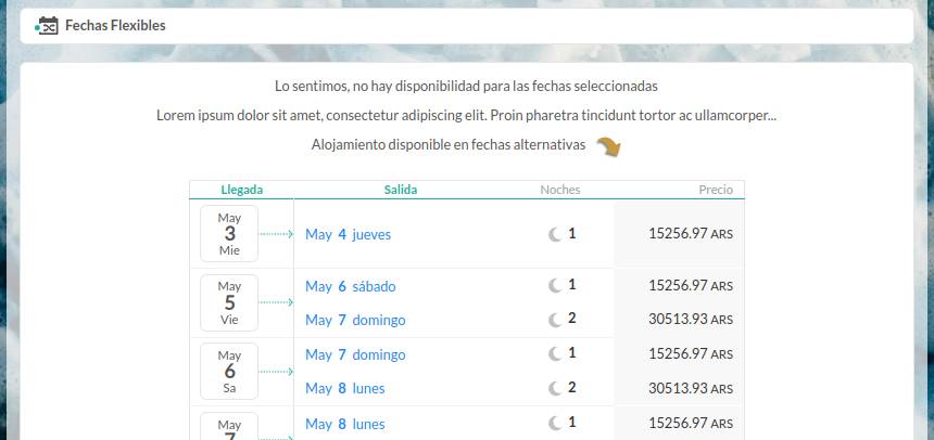 En caso de no haber disponibilidad, la función Fechas Flexibles le brindará al huésped otras sugerencias: