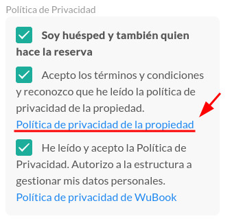 - un enlace a tu política de privacidad, que se mostrará en el último paso del proceso de reserva