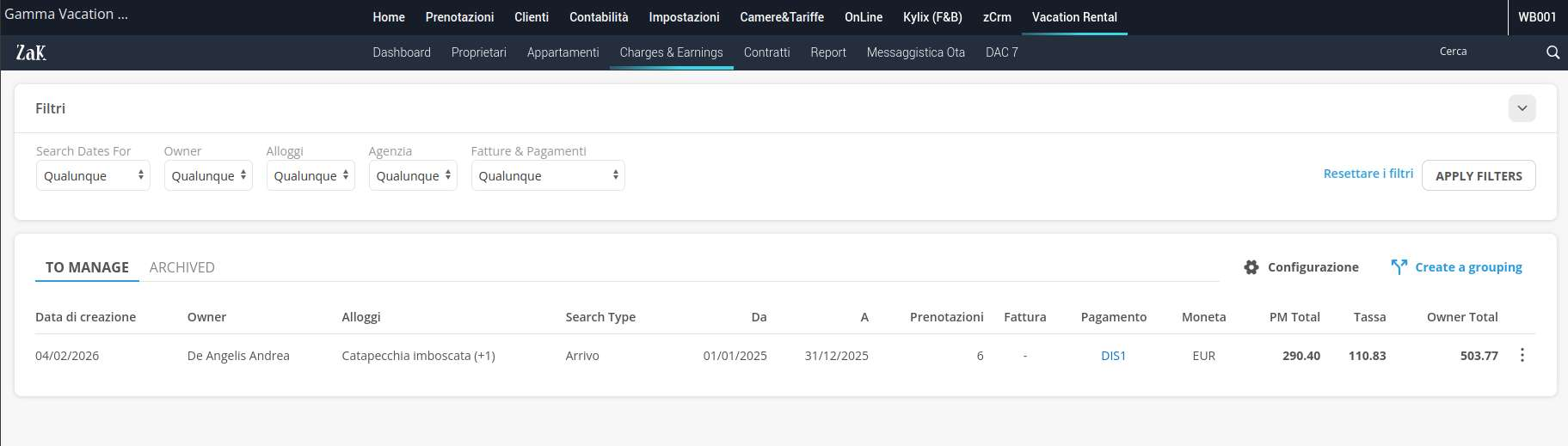 Direct Link: ZaK > Vacation Rental > Charges & Earnings