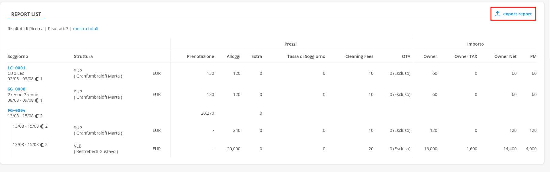 The Reports section offers advanced filtering and reporting capabilities to help managers and accountants analyze financial data related to accommodations and their owners. It supports performance monitoring, revenue sharing, and allows you to generate exportable files for auditing purposes.