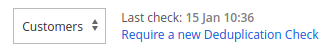 Si vous êtes sûr d'avoir d'autres clients en double, mais que vous ne les voyez pas dans la liste, essayez de demander une nouvelle vérification des doublons. Pour cela, cliquez sur le bouton spécifique en haut à droite, attendez quelques secondes puis actualisez la page :