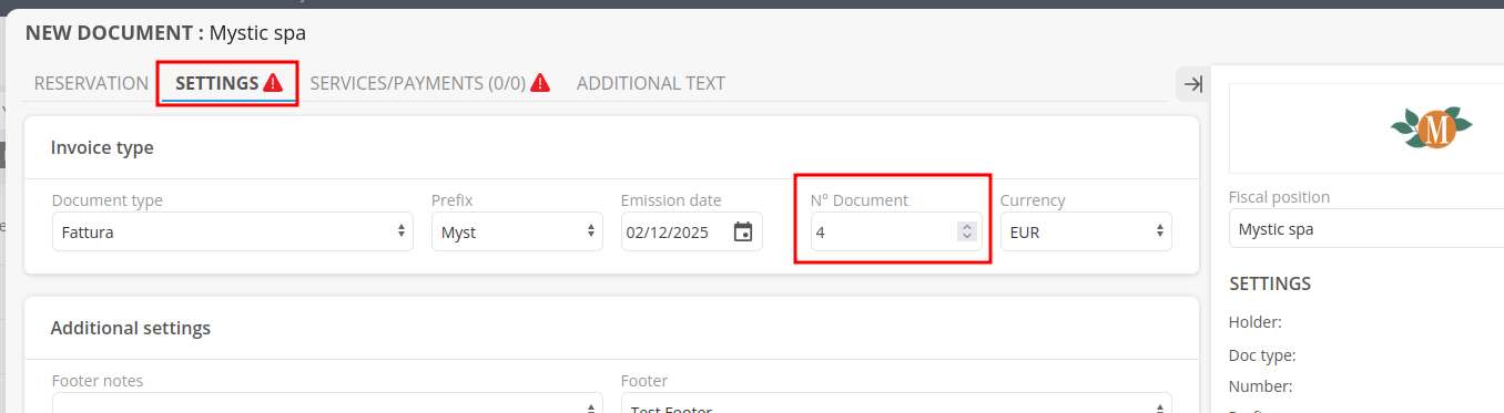 ☞ Link utile: Zak (PMS) > Configuration > Configurations > Factures