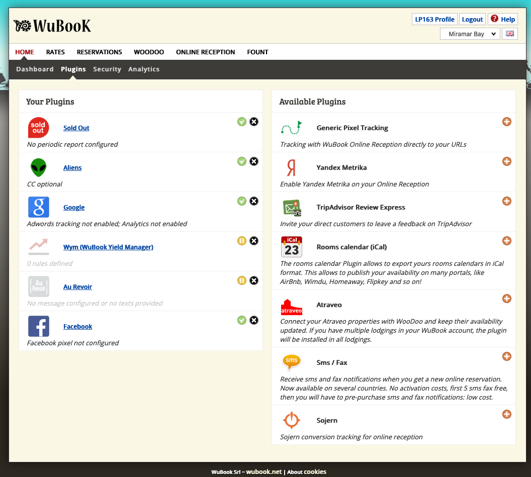 With this plugin you can configure the system to automatically increase your prices on the WuBook parity rate plan when receiving a reservation for a defined period. When a reservation gets cancelled, Wym will act the other way around reducing the price in relation to your configuration.