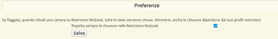 6 Scroll down to the PREFERENCES section and click on Save. If you want the closures that you set in the WUBOOK RESTRICTIONS plan to always be respected and prevail over any restrictions plan, leave the tick.