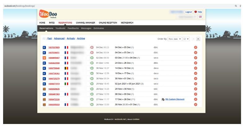 Once connection established between Woodoo and OTAs, the reservations will be visible in section
