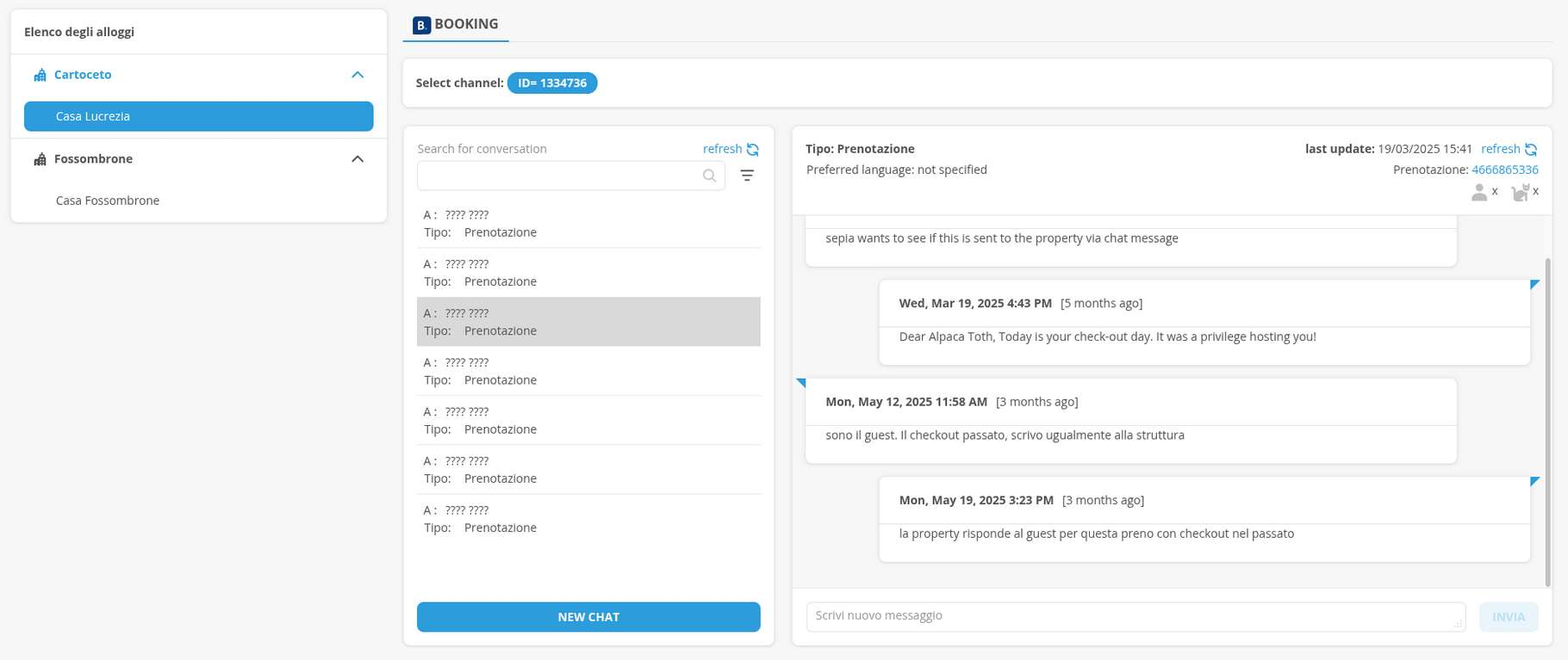 The Channel Manager messaging provides a unified interface for managing communications with guests from third-party reservation platforms, particularly Airbnb and Booking.com.