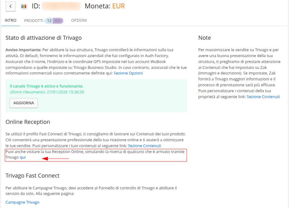 - Alla sezione INTRO del canale Trivago troverai un link per controllare come appare la tua Online Reception sull'interfaccia Trivago.