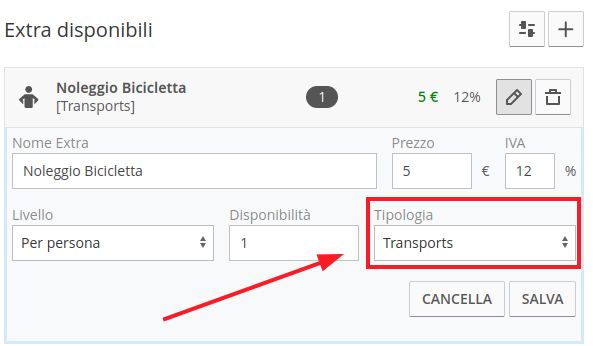destra, dopo aver cliccato sul nome dell'extra, puoi impostare i seguenti parametri:
