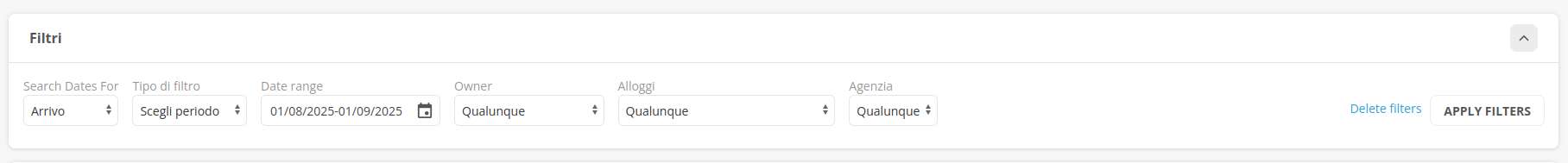 - Prenotazioni ricevute da determinate agenzie o canali del Channel Manager