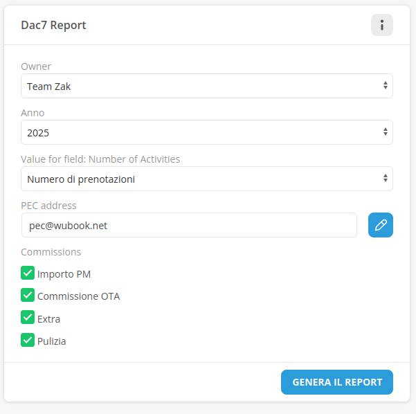 La sezione DAC 7 del Vacation Rental riguarda i requisiti legali stabiliti dall'Unione Europea per i gestori immobiliari che operano su piattaforme digitali. Questo modulo è responsabile della compilazione e revisione dei dati necessari alle autorità fiscali locali.