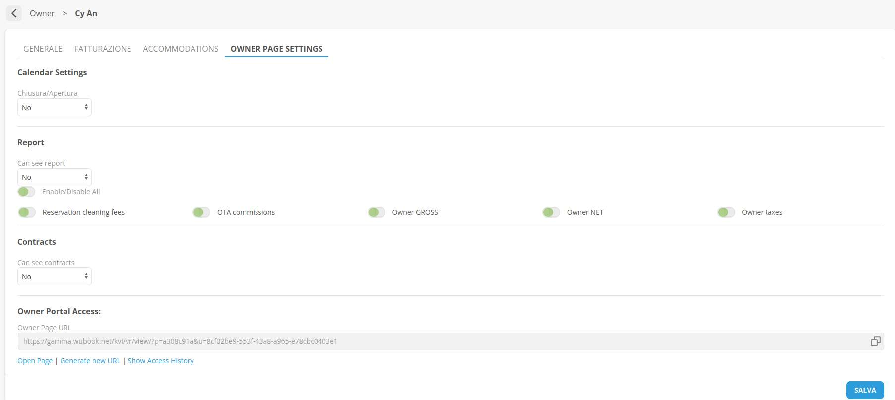 The Property Manager can share the page with the owner or regenerate the link via the appropriate section in the settings: