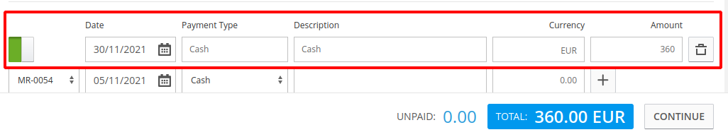 После того, как это будет сделано, вы можете перейти к обычному выставлению документа, который, конечно же, будет содержать платеж с установленной вами датой (в следующем примере, 30/11/2021).